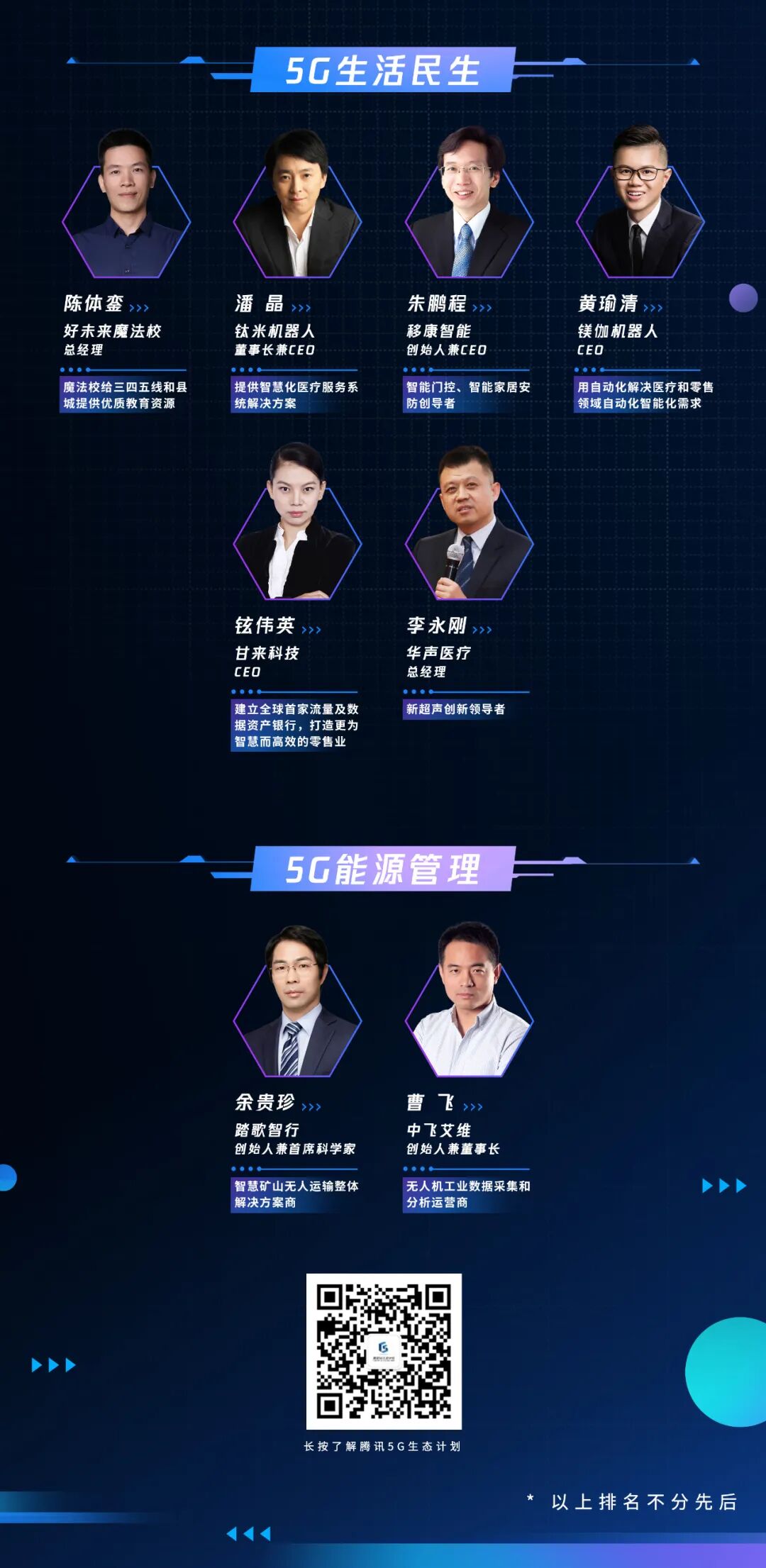 同时,腾讯5G生态计划还将协同腾讯5G城市计划,共同组成驱动5G落地的两大强力引擎结合城市产业特色,联动政府资源及运营资源共同打造专属城市特色5G应用。联合5G生态计划的创新伙伴的现有产品落地场景和地方城市,打造5G应用标杆。
