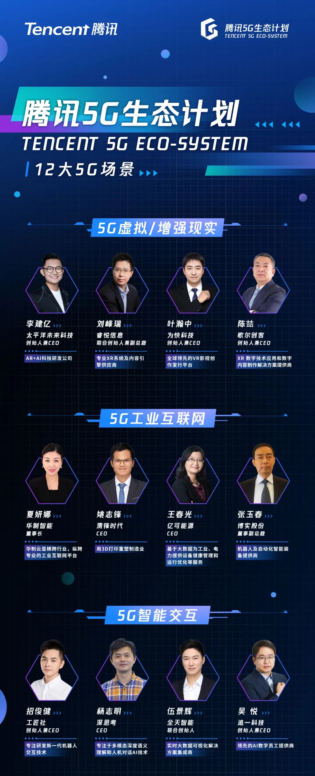 作为腾讯打造5G开放生态的重要一环,腾讯5G生态计划,将持续寻找产品技术成熟、有场景、可商用拓展的5G创新公司。腾讯5G生态计划将和5G创新伙伴,共同深度挖掘5G产品、技术与场景的结合需求,打造并整合5G技术和行业解决方案。