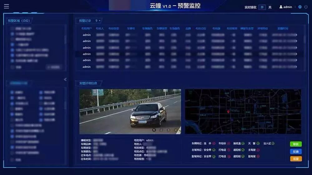 云瞳公安警务视图大数据平台可实现各种形式的车辆布控,包括车牌布控、车型布控、品牌布控、图片布控等各种布控条件,并可支持区域布控(电子围栏),可实现对重点车辆的布控预警,并与PDA关联,直接推送至一线执勤民警,为车辆拦截提供了强大工具。